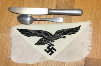 These items came with a Spanish cross medal group, and just did not fit in with the medal group. The sports shirt eagle is your typical one very clean, the knife and spoon are Luft marked and maker marked on the back. Condition eagle very good ++ knife, spoon used good + ...Read and See More