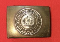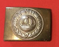 This is your typical WWI Prussian brass buckle with the nickel Gott Mit Uns applied by sodder on the reverse. The Crown plate has great sharpness to it but the crown itself has a slight dent to it. No maker marks. Condition good ...Read and See More