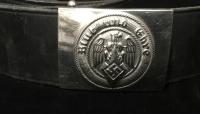 This is a very nice combination of a HJ Nickel Buckle and a quality Brown Belt. The Nickel HJ buckle is stamped RZM M4 / 22 for the mfg. C. t. Dicke on the inside of the lower arm. The quality Brown Belt only has the size 105 stamped on it. The Belt catch is the later brass catch.
