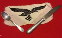 Just a small group that I put together going thru some boxes. There is an original Luft sports shirt patch, a well marked spoon and knife for the Luft service. Condition good +++ ...Read and See More