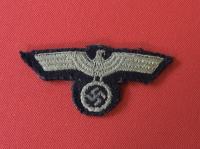 This Panzer Side Cap Eagle with the black background, gray thread was removed from a cap. I have had it so long I don’t even remember buying it.Size 3” wide x 1.5” high And has been made for the narrow front to keep the wings level.