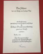 A little over 40+ years ago I made a great hit and purchased a pile of material from a Veteran. Among the items was a small pile of German Police Silver 18 year long service documents. The documents have a printed signature on the bottom right plus the embossed Eagle Stamp on the lower left corner. ...Read and See More