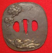 I bought these a year ago and just found them again, this is a period iron tasuba with a gold nightingale and flowers on one side the other side has some gold figures under hard rubber it looks like someone put them in with the Japanese army rubber shoes and it stuck to the side. I have removed a lo ...Read and See More