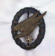 The picture makes it look like the gold finish on the eagle and the wreath is stronger then it is, it is not that strong. It is however a very original badge in fine condition, I bought this years ao with some other “stuff” from the son of the vet. There are problems with our order page so em ...Read and See More