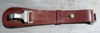 This is the early style hanger with the top clip that is much smaller than the working clip.Hanger is made from a dark brown leather with the early oversized Luft pebble clip. Would look great on an early silver Luft Sword.