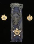 This display originally came from the E. H. Barnes GAR Post. It consists of 12 Post Daughters of Veterans officers badges. The title bars are President, SV President, JV President, Secretary, C ...Read and See More