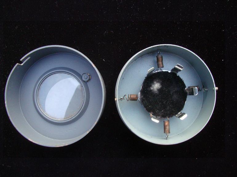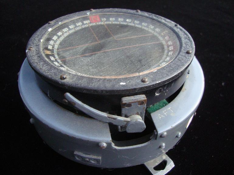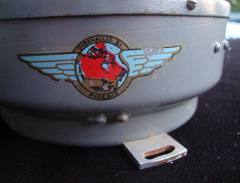 Two items from my Aircraft parts collection, when I purchased the compass I was told it came from a Spitfire airplane. Now having done some research I find it was indeed used by that plane but also others including bombers and even early British tanks. So what we have is a Canadian issued compass with the RCAF brass tag and serial number on it. There is a winged decal on the side that says overhauled by Phoenix. The bottom has a decal for the RCAF inventory? The compass works with fluid in it and the outer disk moves freely. The second item was sold to me as a carrier for a aircraft watch or compass. Never figured it out but nicely made. Condition very good ++
