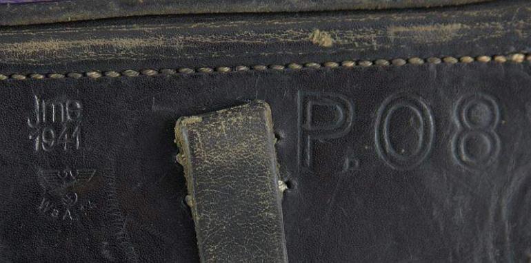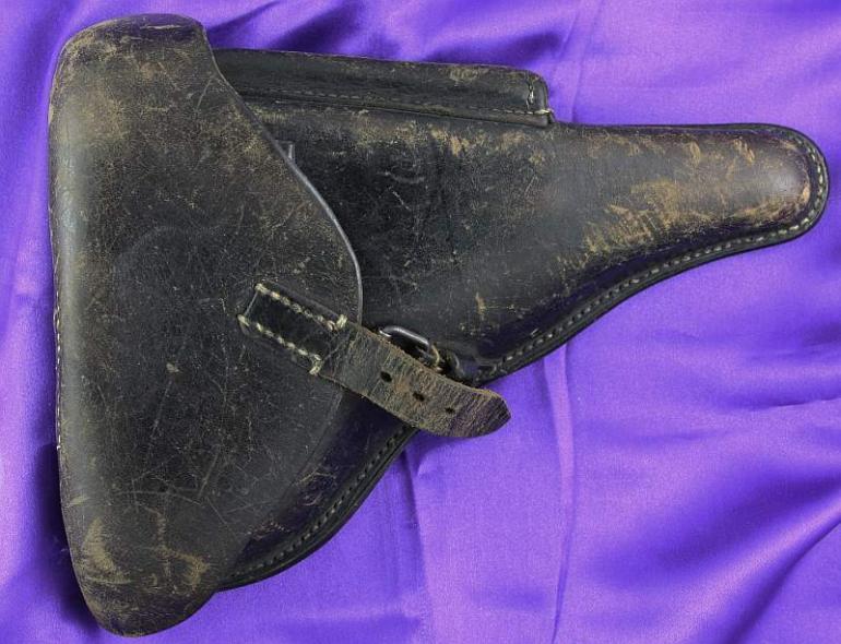 This is a slightly worn PO8 marked Luger holster, it is nice and strong in condition with the release strap still present. Worn but nice!