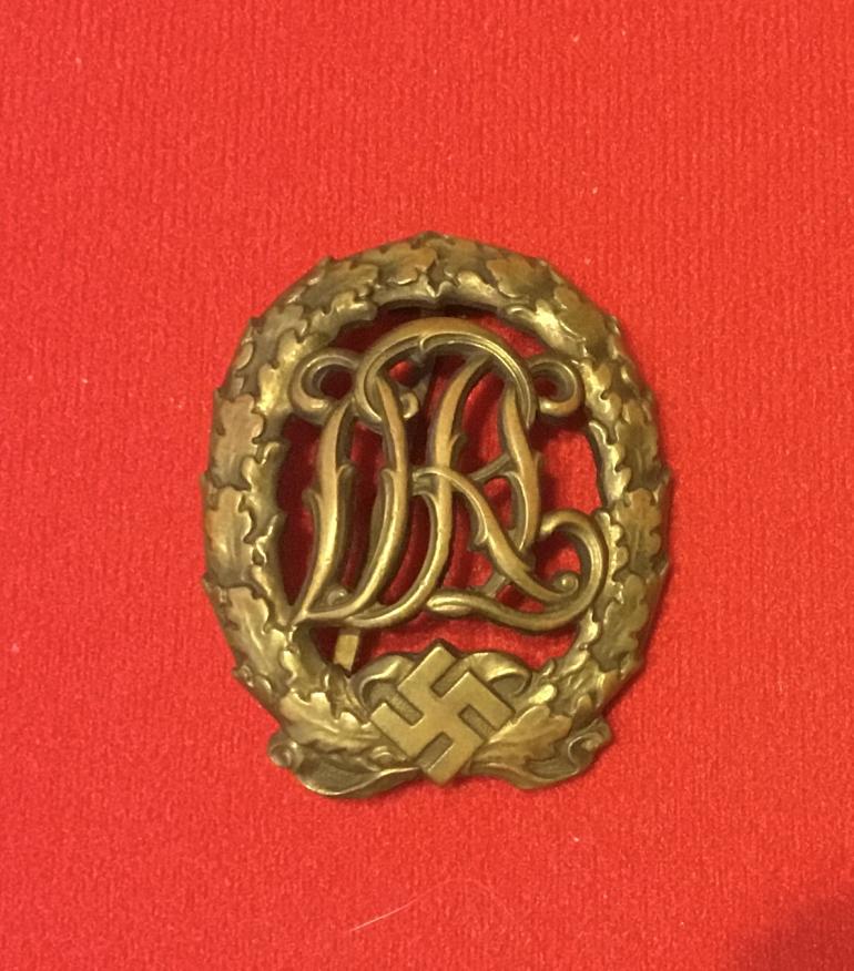 This is just a great strike is the DRL badge. The bronze material has a nice used tone to it. The reverse is marked DRGM 35269 and Wernstein Jena. Badge has full original pin and catch. Condition very good ++