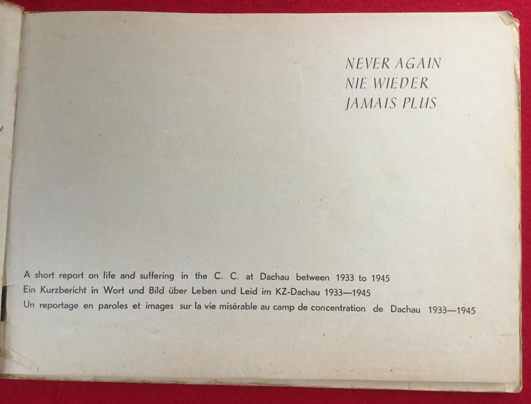 NEVER AGAIN BOOKLET OF DACHAU