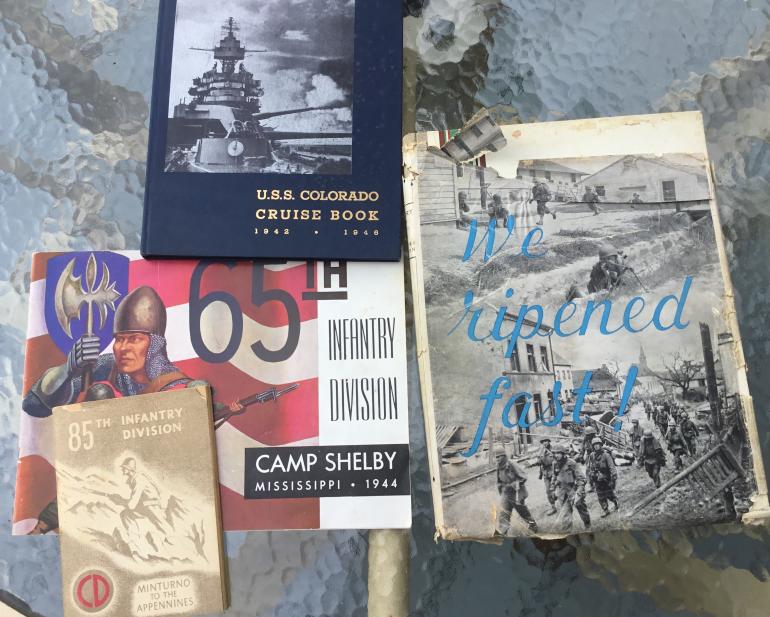 I keep stuff so here is a small group of the following units A 76th infantry division book 249 pages part of the dust cover great front covet, B 65th infantry division at camp Shelby 1944 C 85th infantry division Minturno to the Appennins and D USS Colorado cruse book 1942-1946. Condition very good ++