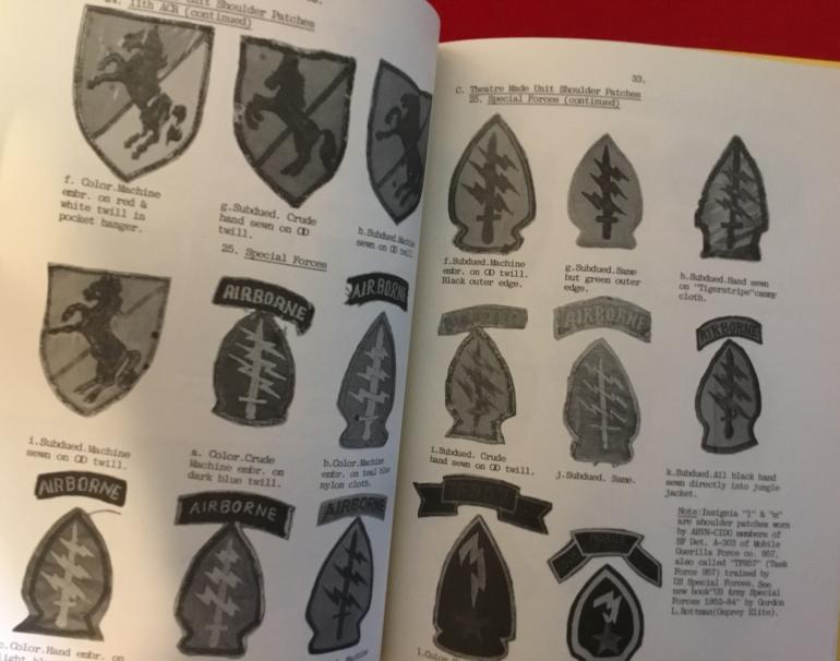 The first book is U.S. Army Insignia by James Mc Duff published in the 1970's? The whole book is on theater made patches for the various units. He shows variations to the hand made patches, interesting reading. The second book is the Vietnam NAM studies published by the Dept. of the Army in 1973 covering Airmobility 1961- 1971. The former owner highlighted several pages but did not list why. The cover is dirty from use rest is in great shape. Condition insignia like new, Airmobility good