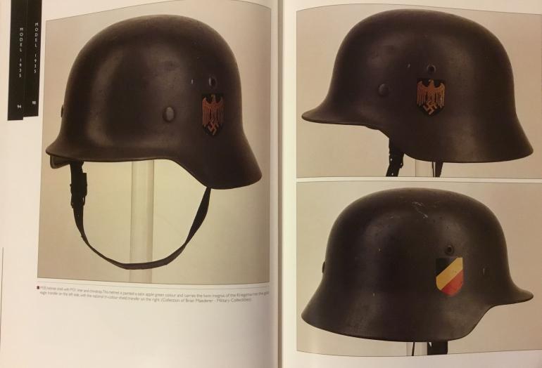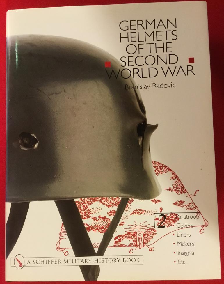This two set volume of the German helmet in WW2 is by Branislav Radovic and both are large books with lavish photos of various helmets. The books are 9" wide by 12 1/4" high with fantastic color photos covering M1916/18, M1932,M1935, M1940, M1942 helmets, covers, liners insignia, decals. Just the gambit of information that is interesting to read. Condition like new with dust covers.