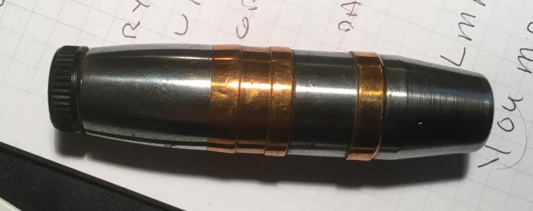 I have had this in my collection for far too many years, I bought a pile of souvenirs from a Pacific vet lots of ordnance and I kept this as an example. This finely made projectile is almost too nice with two separate rotating bronze bands, with a plastic screw top where the fuse would be located. The round itself is devoid of any explosive in it. Oh the plastic top has Japanese characters raised around the top. Length 3 .75” long and about 1” wide. Condition very good +++