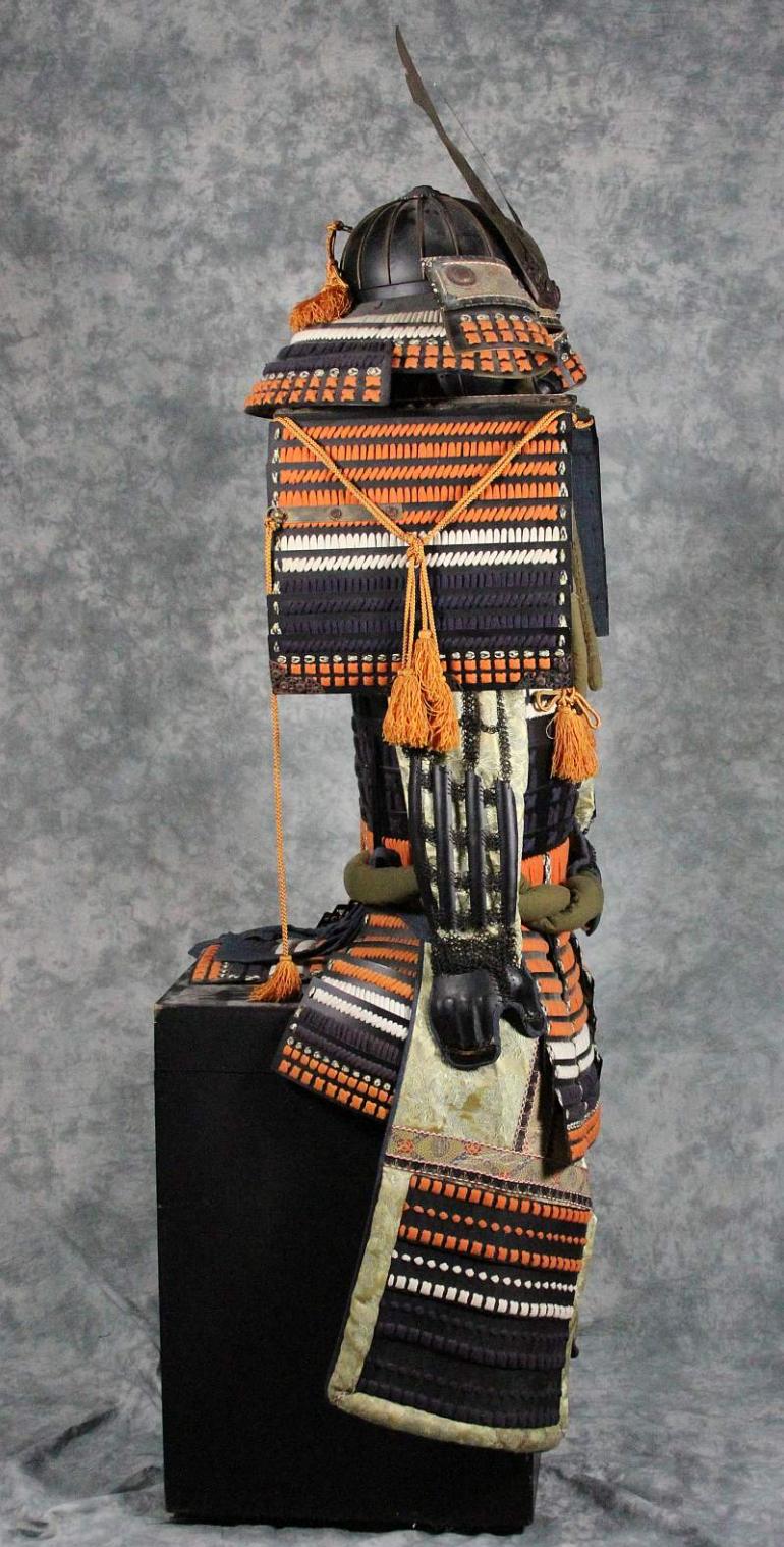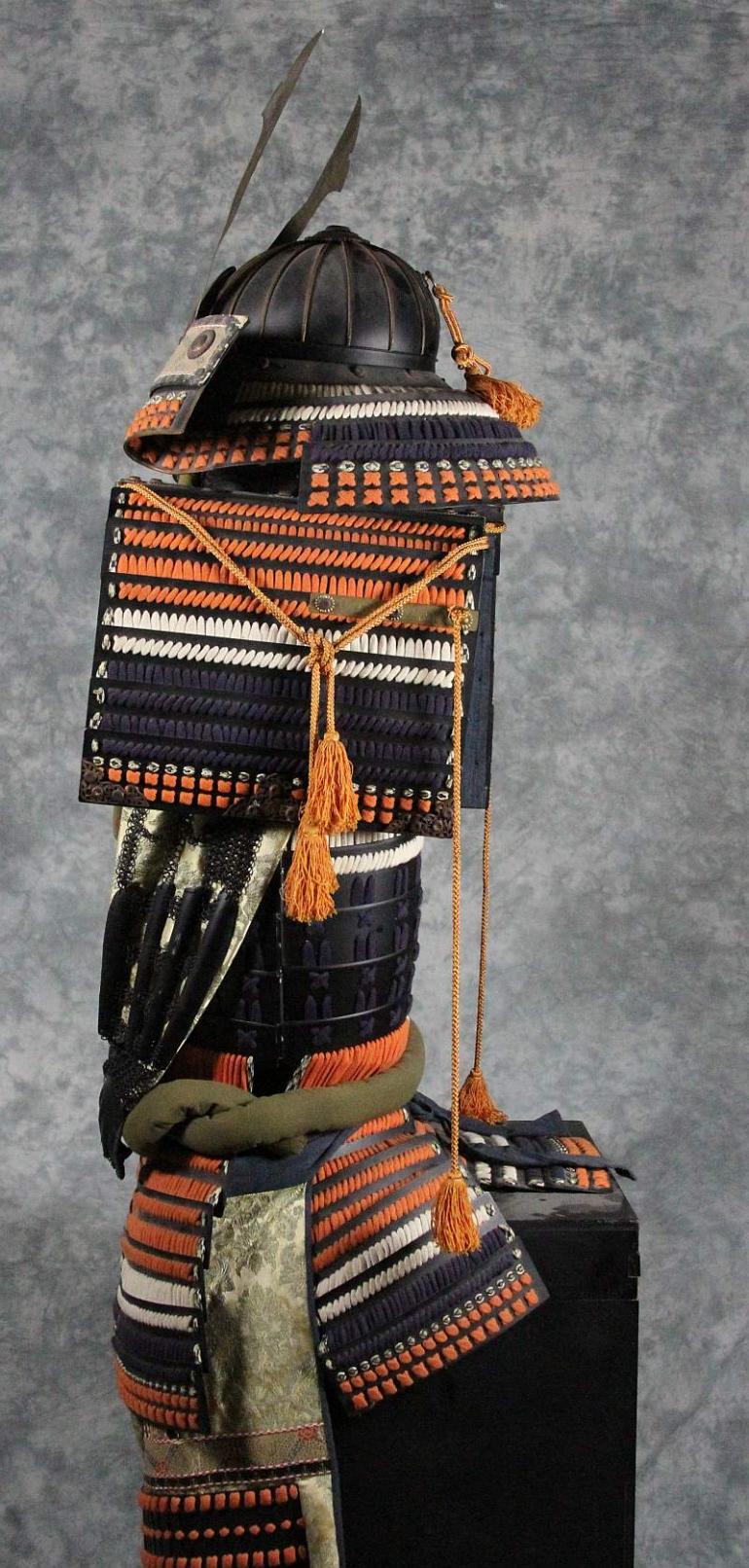 I have owned this armor for many years now. It is about 50 years old and was made in Japan, it was made in the same method as the old armor was. We have lacquered plates that are laced together to make larger pieces and then a complete suit of armor. This one is what you would expect to see on a higher ranking samurai. You can buy one like this or spend 15K on an older suit made the same way. Just as a note, this is Japanese made and not the low grade Chinese armor available these days.