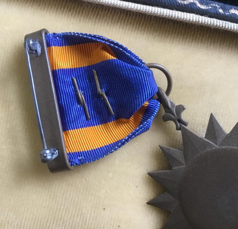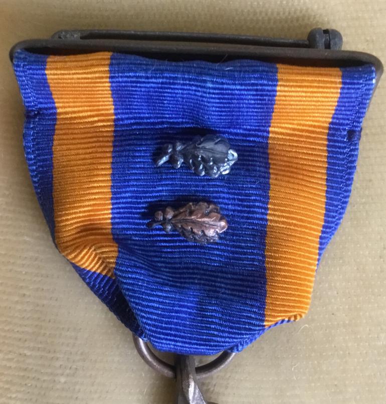 This WW2 period full wrap broach with pin assembly is very nicely toned with a Silver Oak leaf cluster for five combat flights with a bronze Oak Leaf cluster for one additional flight for six total. The clusters are applied as they should be so the medal was not enhanced. At a later date. My tag showed I purchased this set in the early 70’s. Condition very good +++