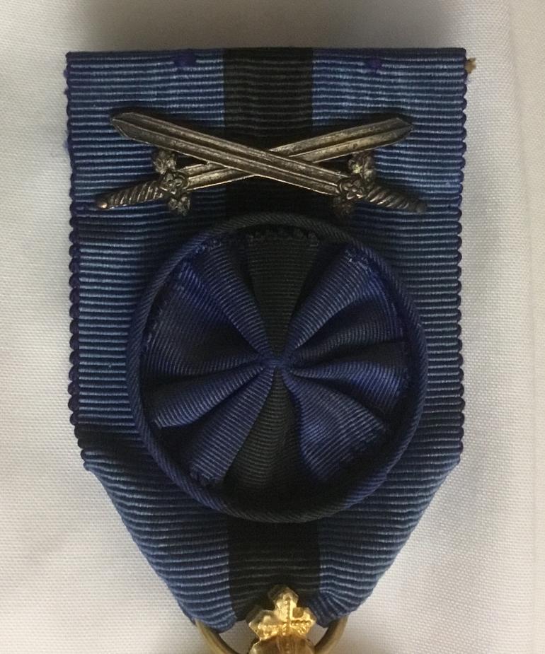 This Officers medal is with swords and the enamel crest is complete. Condition very good ++