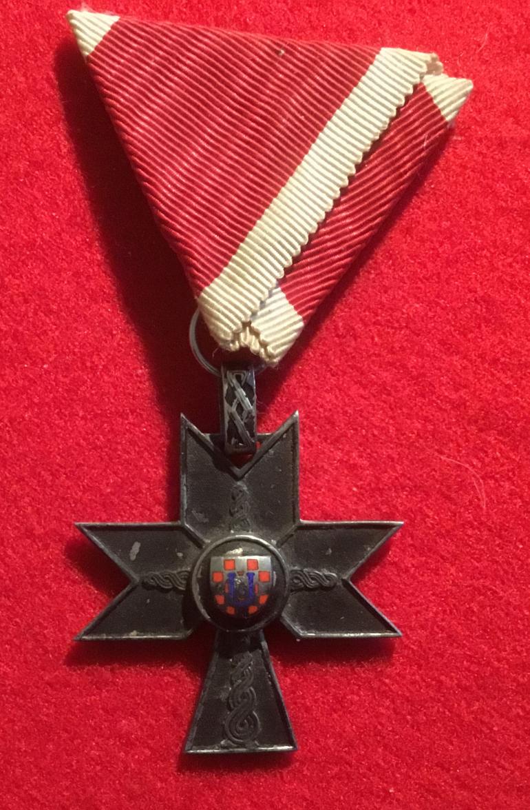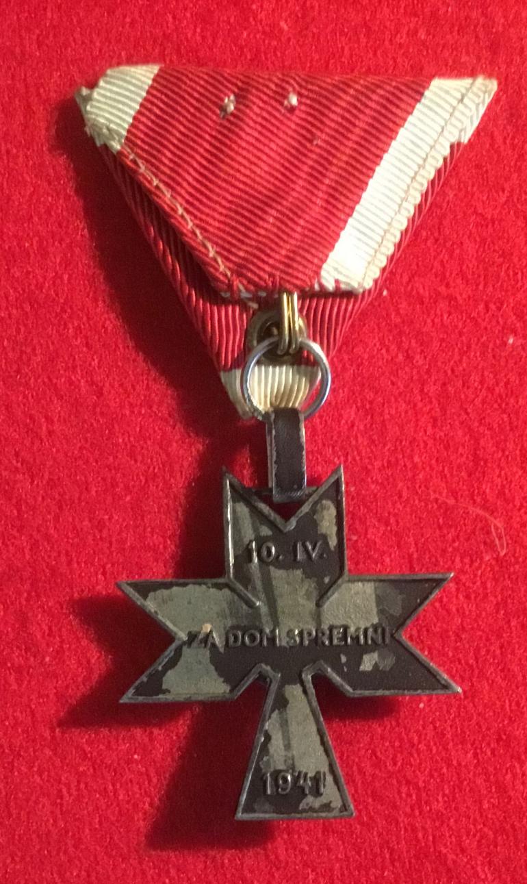 I have had this medal for over 30 years I just liked the looks of it and really never bothered to find out exactly what it was for and who awarded it. After a little research I found that this medal is called the Military Order of the Iron Trefoil and also known as the Croatia Cross. This medal was the highest military decoration of the Independent State of Croatia military for bravery in action. The award itself was a seldom awarded medal but it was awarded to German Officers and Men who had remarkable success against the enemy. I had purchased this medal with a large veteran lot of German medals according to my notes.