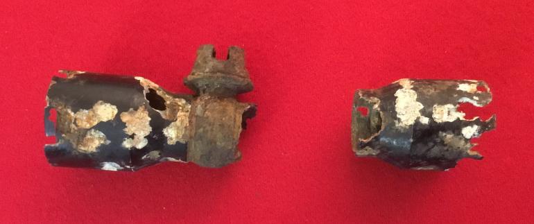 This could be your winter project restoring this Turret Mounted Scope. The Scope parts came from the Kirkland Battlefield some time ago. I found the parts at the Allentown Gun Show this past weekend and was really surprised to see the front mounting ring of a Turret Scope in the box of dug up parts. What surprises me is that even in this condition the optic lenses are still in the two ends of the scope parts. I started to clean the dirt off one lenses and then thought it would be better not to do that as it would take away from the dug appearance. Just a neat display item, would be nice if they could tell us what they saw/ Condition, Dug