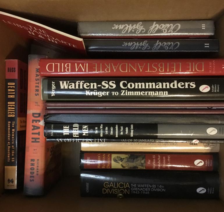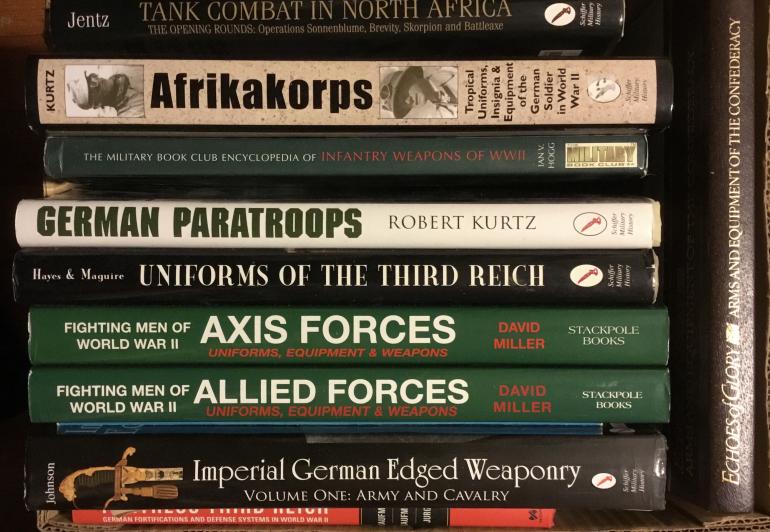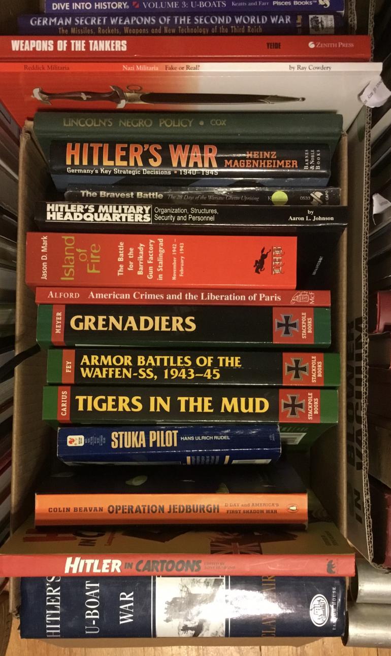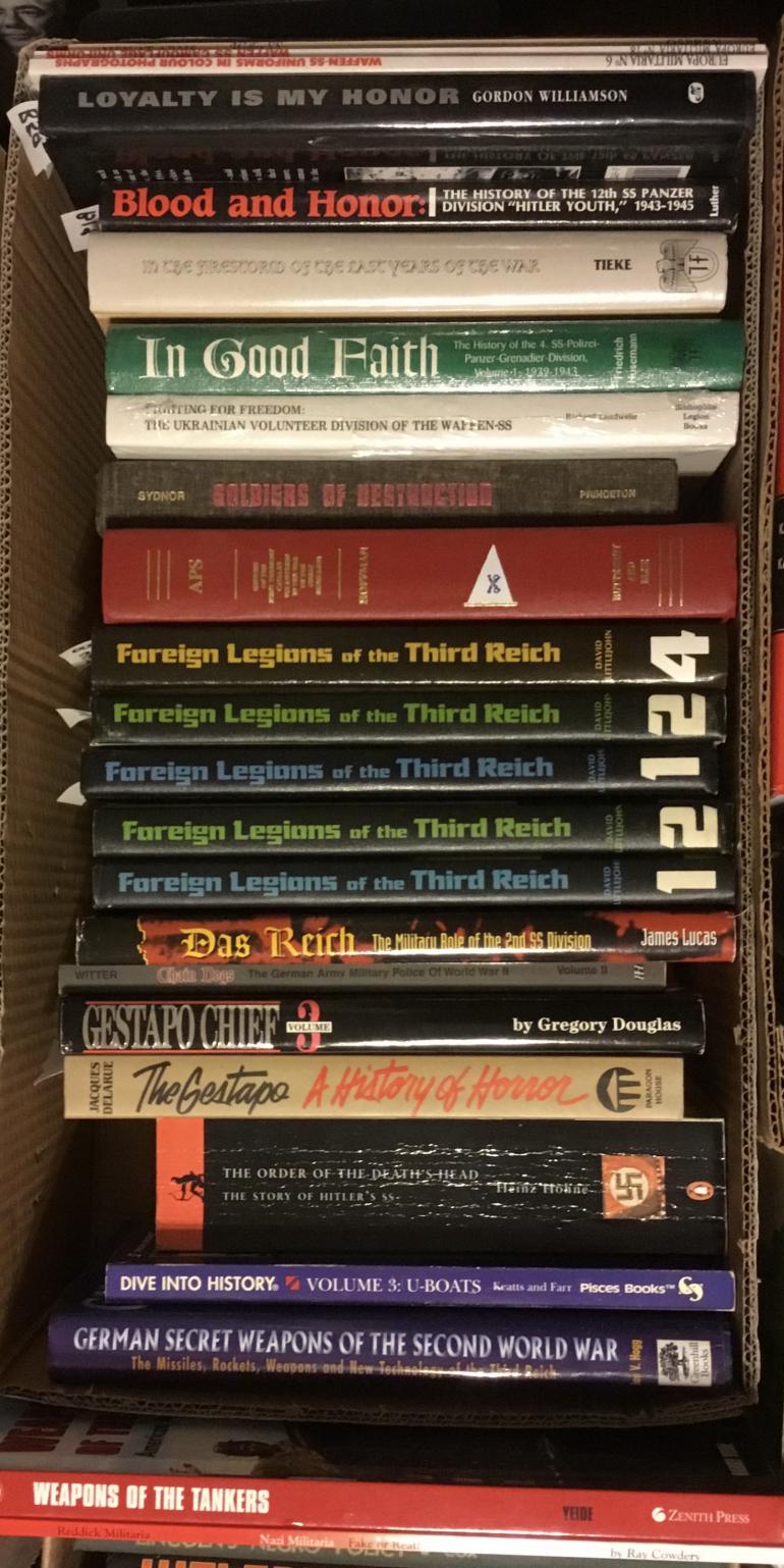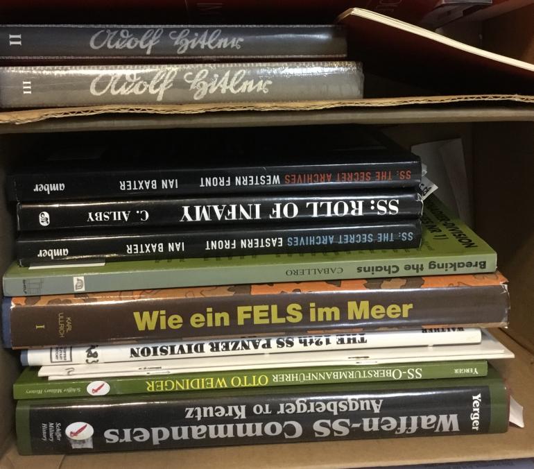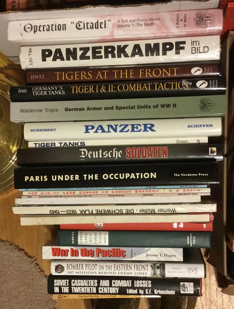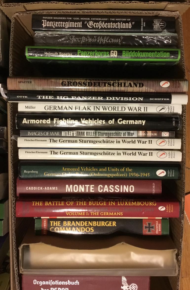 The photos of various WWII books on mostly German units and histories along with reference books are from a dealers stock that has been closed for many years. There are considered new old stock. I have added some reference books from my library that were gently used.
