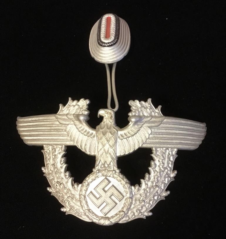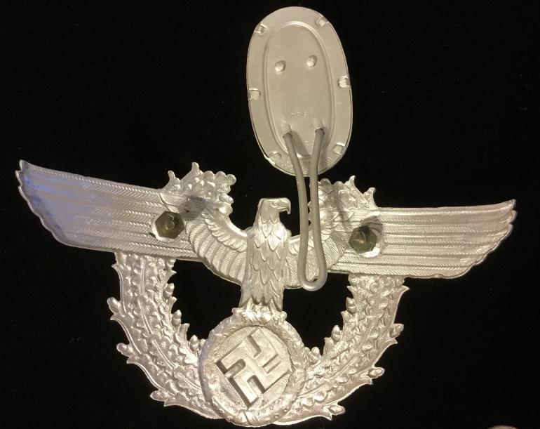 Just a nice set for your Police Shake. The Eagle and Wreath are a great strike the Eagles head needs to be cleaned the reverse is marked CTD on the shoulder of the threaded stud holder. The original nuts are with the eagle. The POMPOM is marked DRGM 1938, CTH DICKE LUDENSCHEID.