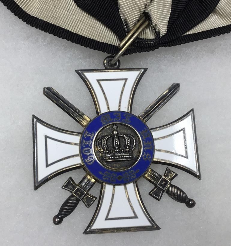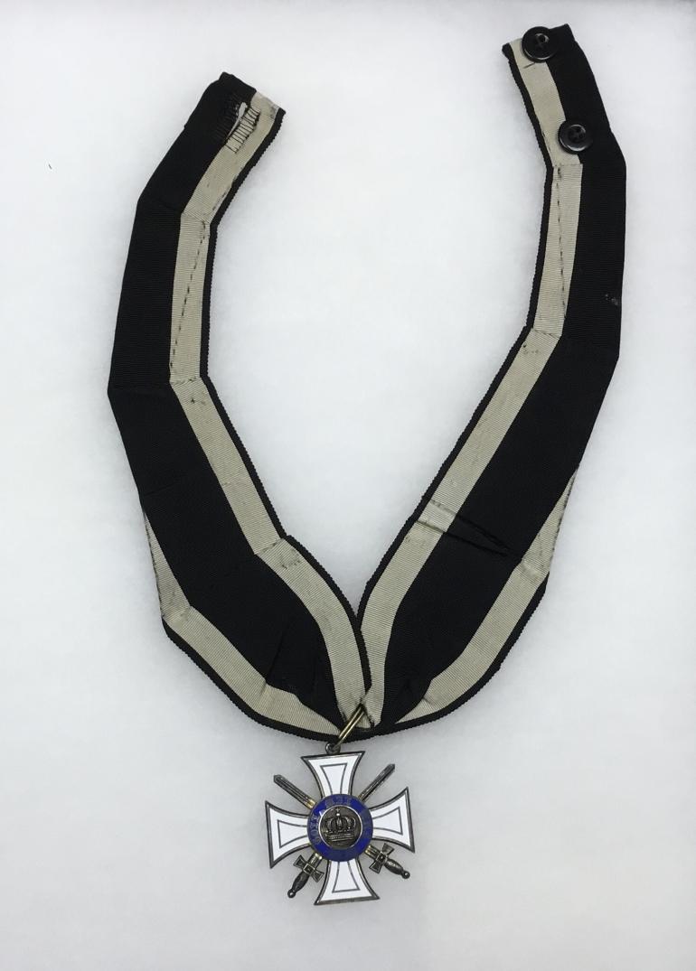 This Order of the Crown 2nd class has the full original neck ribbon, the enamel is not damaged the lower arm is stamped W for Wagner and 838 for the silver content. This is an original period awarded medal from 1914-1918 period. Unfortunately we will never know who it was awarded to, but is sure is an impressive medal.
