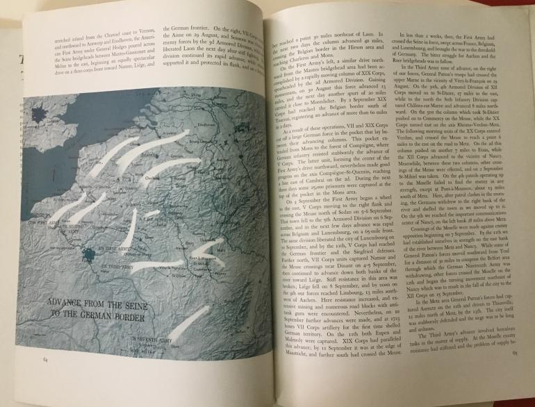 Believe it or not but this is the first time I have seen this book published by SHAEF after the war. I read some of one of the battle reports seems that we could do no wrong and swept aside all resistance. There are nicely done area maps to go along with the various battle breakdowns.