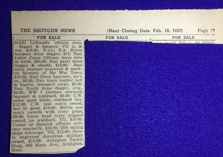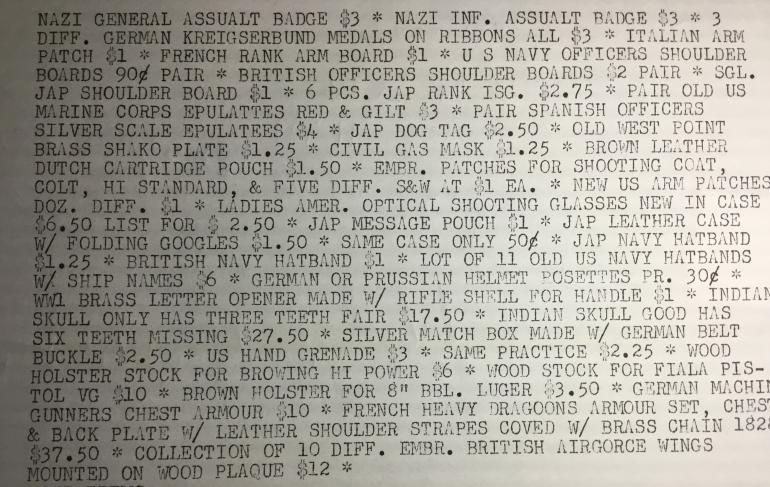 I believe everything was sold a long time ago and as we use to say “sorry about that.” My collecting days really began in 1963 and the prices were just a little higher. With my limited funds I had placed a limit on what I would pay for German daggers and that was $13.00. Didn’t matter what it was, but it had to be with the hanger and of course in excellent condition.