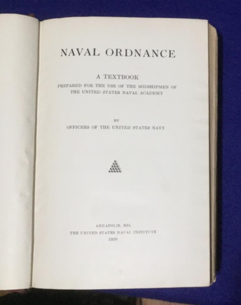 1939 NAVAL ORDNANCE BOOK (BIBLE)