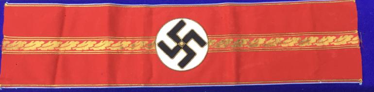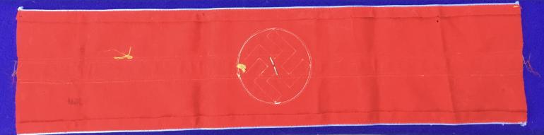 This armband has the deep red color, my photographs do not do it justice showing a weaker red color. I will take better photos and post them later. My knowledge on the political arm bands is next to nil. Condition very good +++