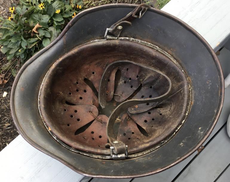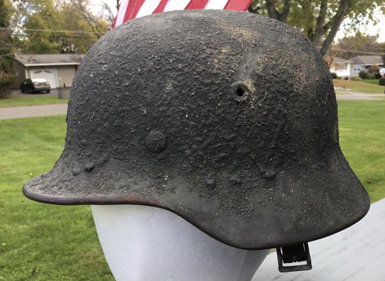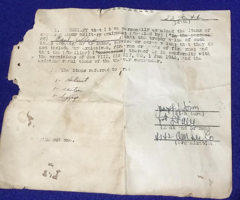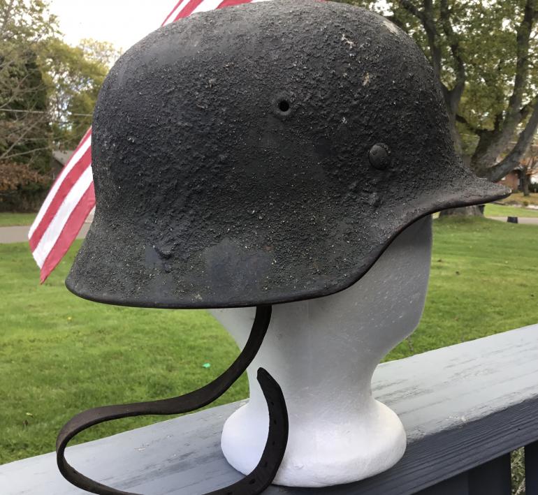 I did not buy this directly from a veteran but at a house auction in September 27, 1998 and have this auction add from the newspaper listing a Nazi helmet. With the helmet came a wooden box that it was sent home in along with a pair of gators and a canteen. The box did not have the cover so the box went years ago as did the gators and canteen. Also included is the certificate to Paul Zellers allowing the items to be sent home. A great helmet and the backup material for the helmet. I know that I took photos of the helmet and box but most likely I will never find it among the thousands of photos of items I purchased over the years.