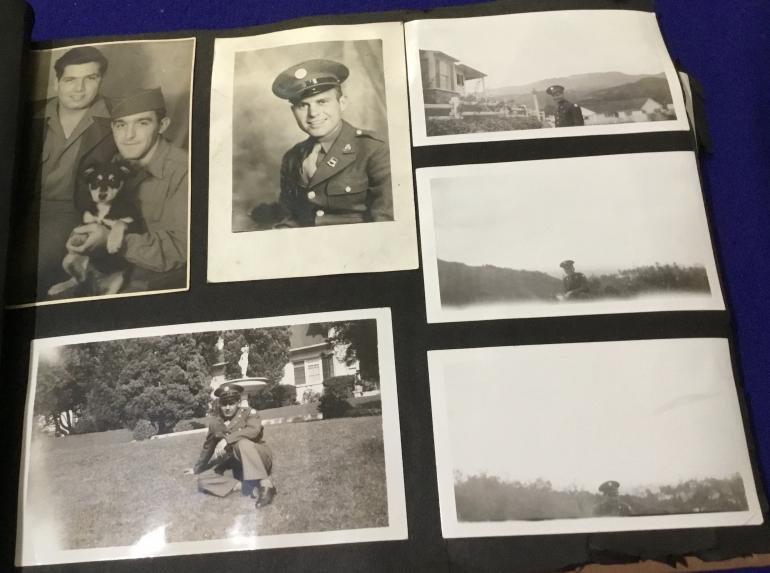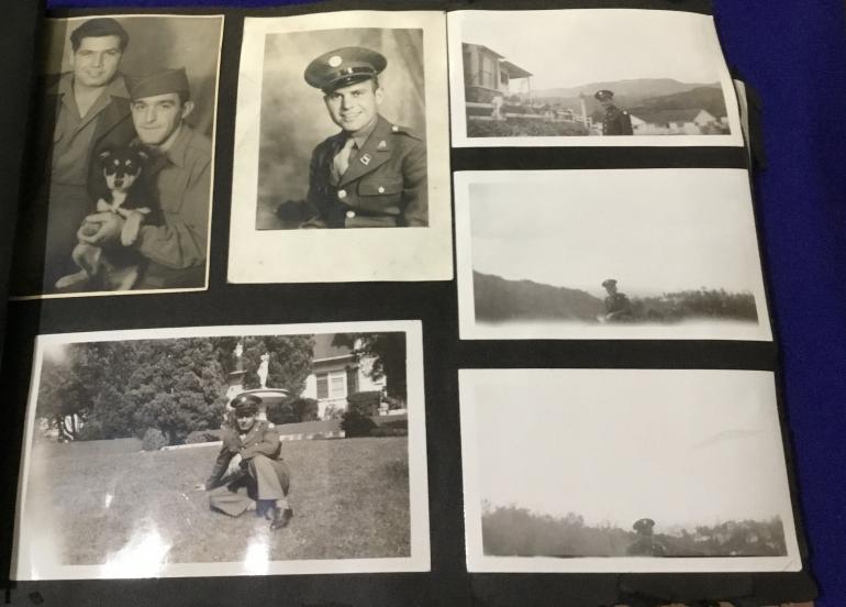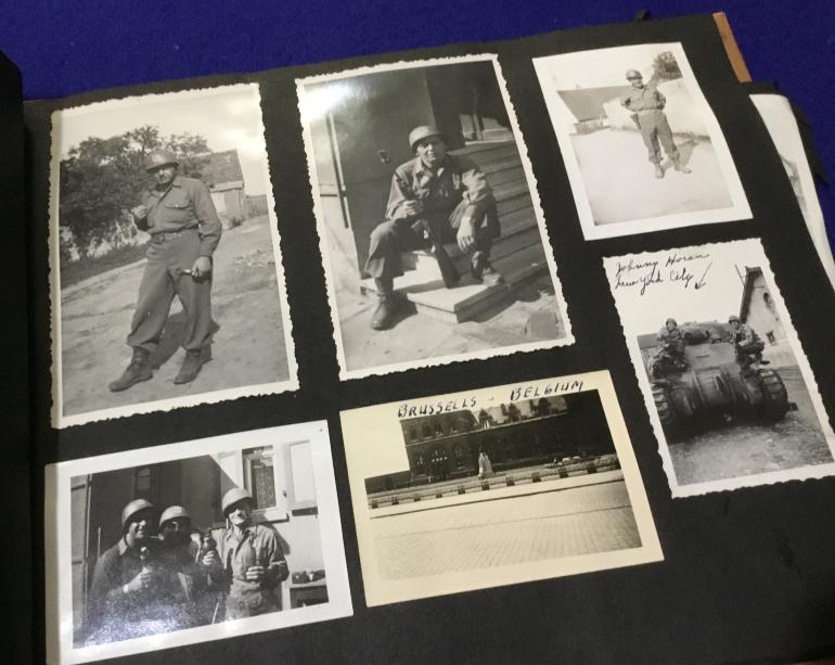 This is a non combat photo album but it does cover one soldiers career thru the war. What is really neat is included with the album is his issued and marked and dated base ball glove and a hard ball.