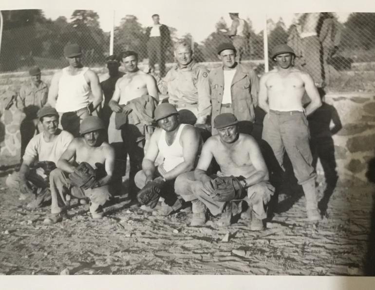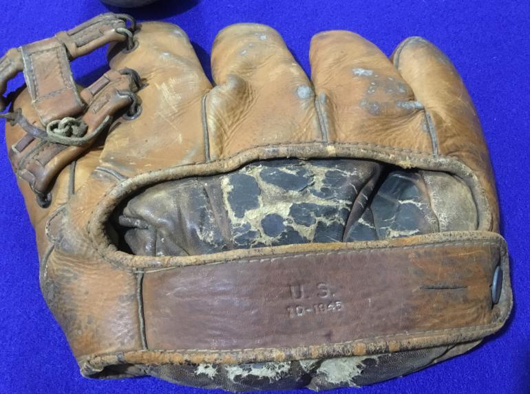 I have to admit that this is the first base ball glove I have ever had. It is stamped into the leather strap on the outside U.S.10-1945 so I guess that he wasn’t one of the first to come home. Must have been helping rebuild Germany.The photo album has around 200 photos and even one of Bob Hope just in his trousers, doesn’t look too good undressed. There are several photos of the base ball team using the same glove but I really do not know which soldier was the owner of the album. So your mission if you accept it is to figure out who is in the most photos both in training and back home after the war.