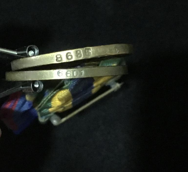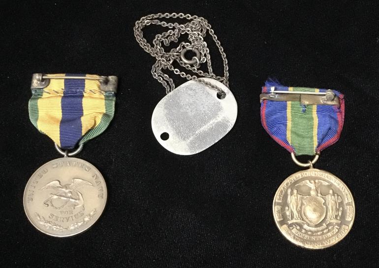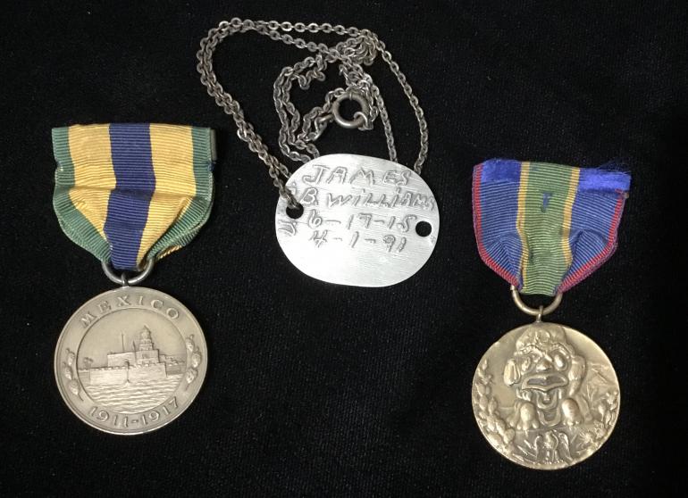 This is a nice small Mexican War Medal Group to James B. Williams to include the following. Federal Navy issued Mexican service medal number 6601. N.Y. State Mexican Border medal number 8635. U.S. Navy Dog Tag one of the famous acid dipped finger bull stories. This group has not been researched, it came out a real old collection.
