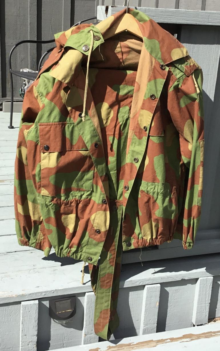 This Italian Camo Uniform appears to be an old new stock as it has never been used. There is the tunic, the hood and the trousers with the full shoulder straps. There is a name of the mfg. on the inside seam of the tunic. I have owned this set for almost 50 years just keep opening old boxes of stuff. Six’s approx 36 which would be average back then. Forgot to mention the pads on the elbows and knees are flexible not the hard broken rubber as in many.