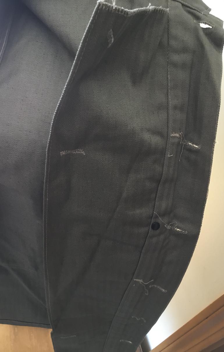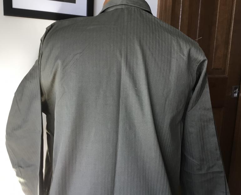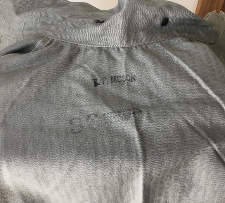 This USMC P44 Utility Jacket is unissued its is in brand new condition, never worn. This HBT jacket came from a recent vet family purchase as did the Poncho that is Listed. The tunic was folded with a paper liner and the only thing that has been done to the jacket is the veteran ink stamped his name above the size 36 and the maker. Other than that it looks like it was just made and handed to you. I don’t know what else I can say other you would be hard pressed to find another one this nice or better. Yes it has the complete gas strip and all USMC buttons and the deep chest pockets. The EGA is just so dam black. Love this jacket, but have to sell my stuff as my children threatened me to get ride of my collection of junk.