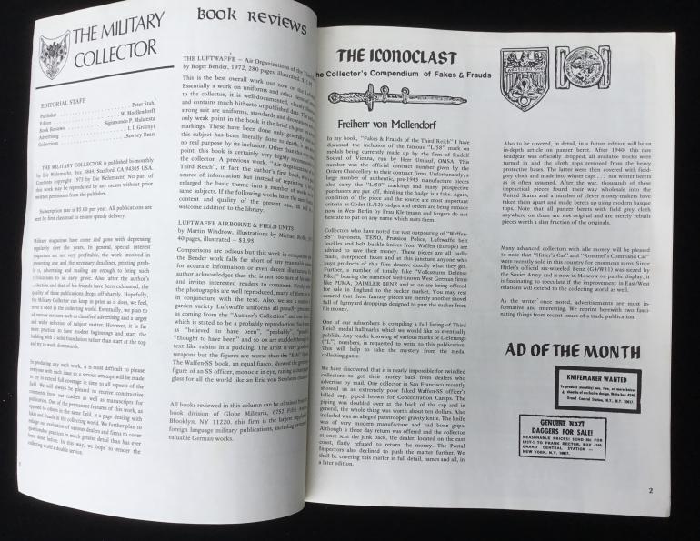 This is the very first issue of The Military Collector with four double sided pages. Not much to comment on the first issue as 4 pages were taken from other references. Also included is a special four page double side issue on basic German belt buckles.