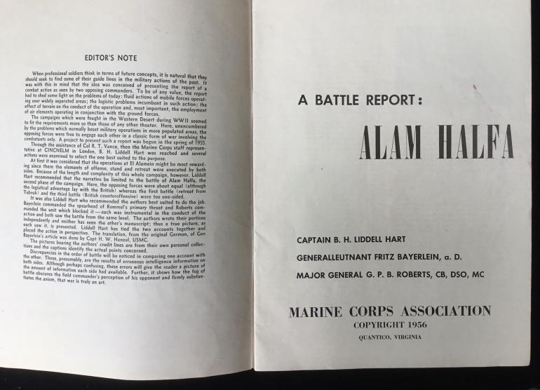 USMC PUBLICATION ABOUT THE BATTLE AT almost Halfa