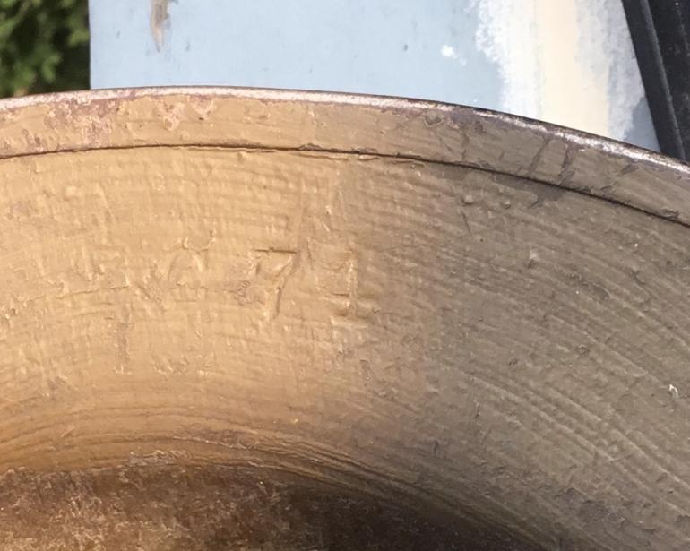 The helmet shell is stamped with 74 and there could be a couple more numbers or letters before it, but unreadable from the heavy paint.