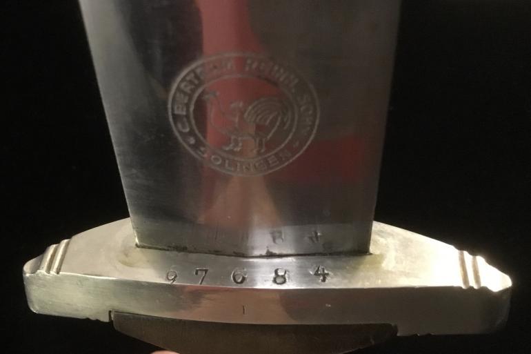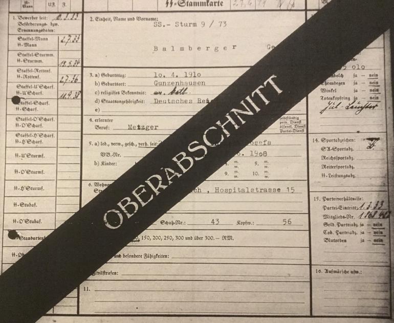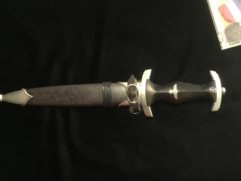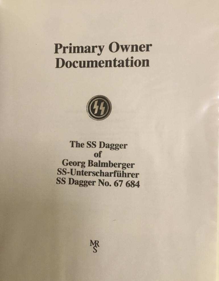 This M34 Dagger’s original owner was Georg Balmberger, Rank SS-Unterscharfuhrer with SS membership number 67 684. His NSDAP membership number is 1 868 422. This Dagger has been researched by Ross Kelbaugh and all the material is included with the Dagger. His personal file includes the typical information up to 1938, along with a photograph of himself. He was awarded a Bronze SA sports badge and a class III driving permit. Also included in the files are copies of his Race and Settlement paper work. This has not been transposed to English so I really do not know what his family history is. I have tried to do some research on the internet but as he was a low rank NCO I have not found any information regarding his service.