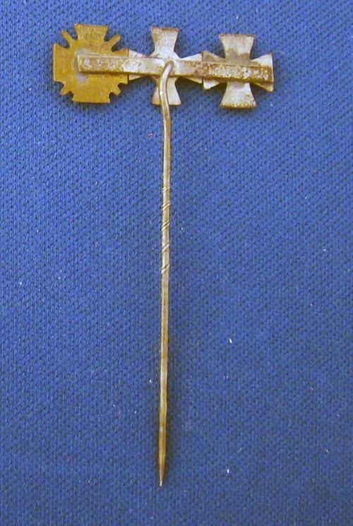 This is just a neat pre WWI stickpin with the Iron Cross medal, the Hamburg Cross medal, and the War Service medal with Swords, Dolphs first new medal. The Iron and hamburg Cross are enamel finished. The reverse has the typical flat bar with the miniature medals soldered to it.A nice looking stickpin. Condition Very good +++