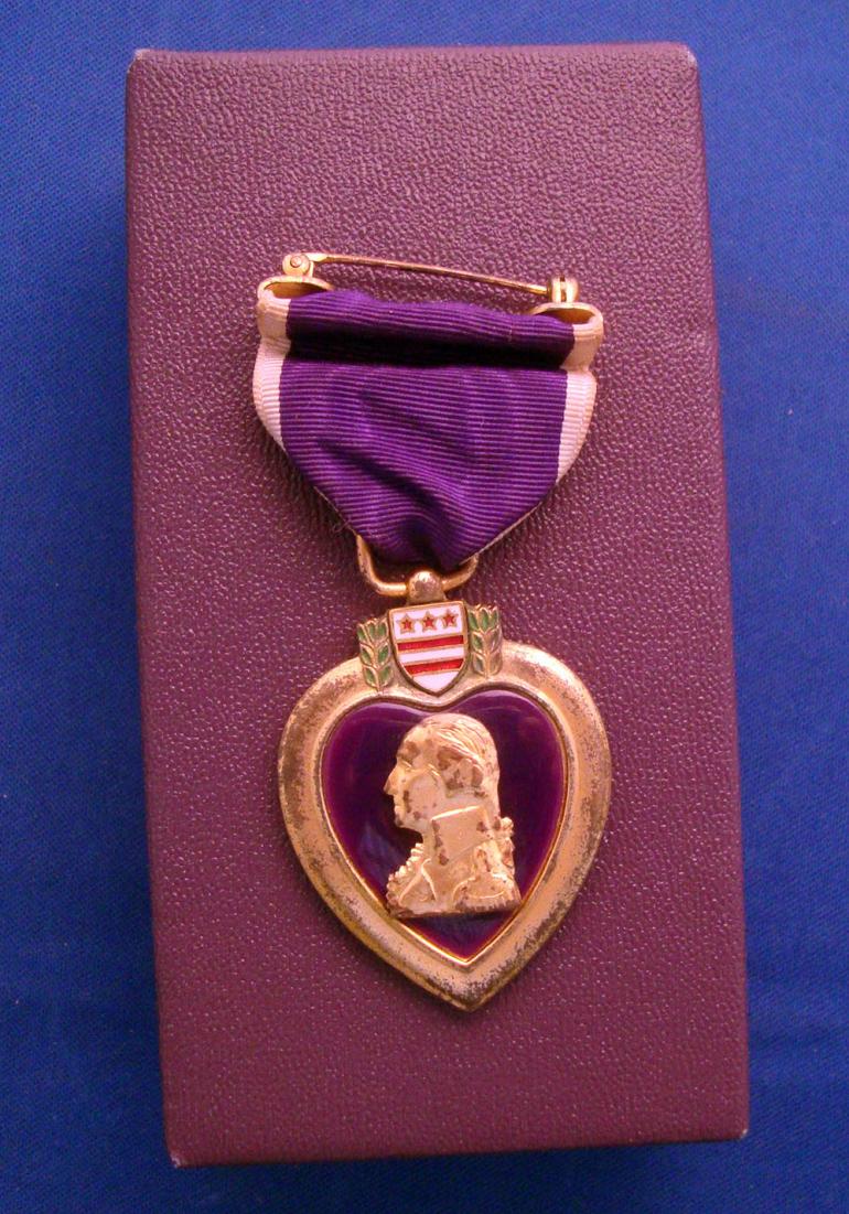 Type 1 Sterling Purple Heart with original issue box. The heart shows ware with some gold finish loss on the front. Condition very good