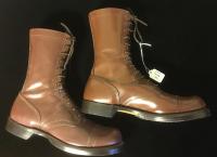 This pair of US WW2 reproduction Paratrooper boots came with a larger purchase of Military items. The boots are brand new never worn and were used for a display and are size 10.5, width D. This set would be great for an reanactor or again for a display item. The laces are string leather the soles an ...Read and See More