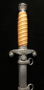 Just picked this one up at the Syracuse Gun Show a walk-in. This Army Dagger has great fittings, the Pommel, cross guard feral and scabbard all match on finish and quality. The grip has the dirty dark finish, meaning it has not been cleaned in A very long time. The groves have dirt, and sweat in th ...Read and See More