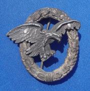 This is a late war Luft Observers Badge by Gustaf Bremer . The Observer badge is my favorite Luft badge and this late war shows the great Eagle except this time he is not holding the swaz. The swaz was cut off very nicely and the eagle is held on the wreath by crude aluminum rivets thru the wings.Th ...Read and See More