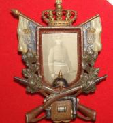 This has to be one of the neatest picture frames I ever had. This one has everything. At the top of the frame is a large Bavarian crown then the cross flags, note one spear point is missing the frame around the soldier Bavarian guy of course has a bayonet on his side and at the bottom of the opening ...Read and See More
