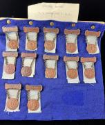 This display originally came from the E. H. Barnes GAR Post. It consists of 12 Post Daughters of Veterans officers badges. The title bars are President, SV President, JV President, Secretary, C ...Read and See More