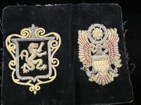 Once again something comes out of a box of stuff and I wonder where and when I acquired it. This beautiful bullion example of a officers visor cap eagle and the standing lion that reminds me of a artillery unit insignia. The Eagle measures 3.5" high x 2.30 wide the Lion is 4" high x 3" wide. They ar ...Read and See More