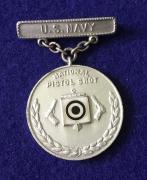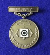 This Navy National Rifleman Badge is highly polished on the reverse the mounting bar is stamped Sterling and the medal is stamped 990.