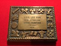 Once again a desk ornaments has risen its ugly head and made me buy this neat item. This small 4.5” wide and 3 1/4” high cast bronze top on a wood base is one of the better ship made item. This desk ornament was made by the U.S.S. HAMUL a Destroyer Tender worked on repair wise. The face is cove ...Read and See More